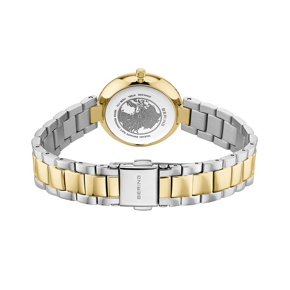 Bering Classic Diamond női karóra bicolor színével, és a 12-es számnál elhelyezkedő gyémánttal egy nagyon különleges választás. Quartz (elemes) szerkezettel, 3 év magyarországi garanciával, valamint zafír kristályüveggel és arany- illetve ezüst színű nemesacél szíjjal - óratokkal rendelkezik. Az óra vízállósága 5 ATM(kézmosásig vízálló), átmérője 29mm.