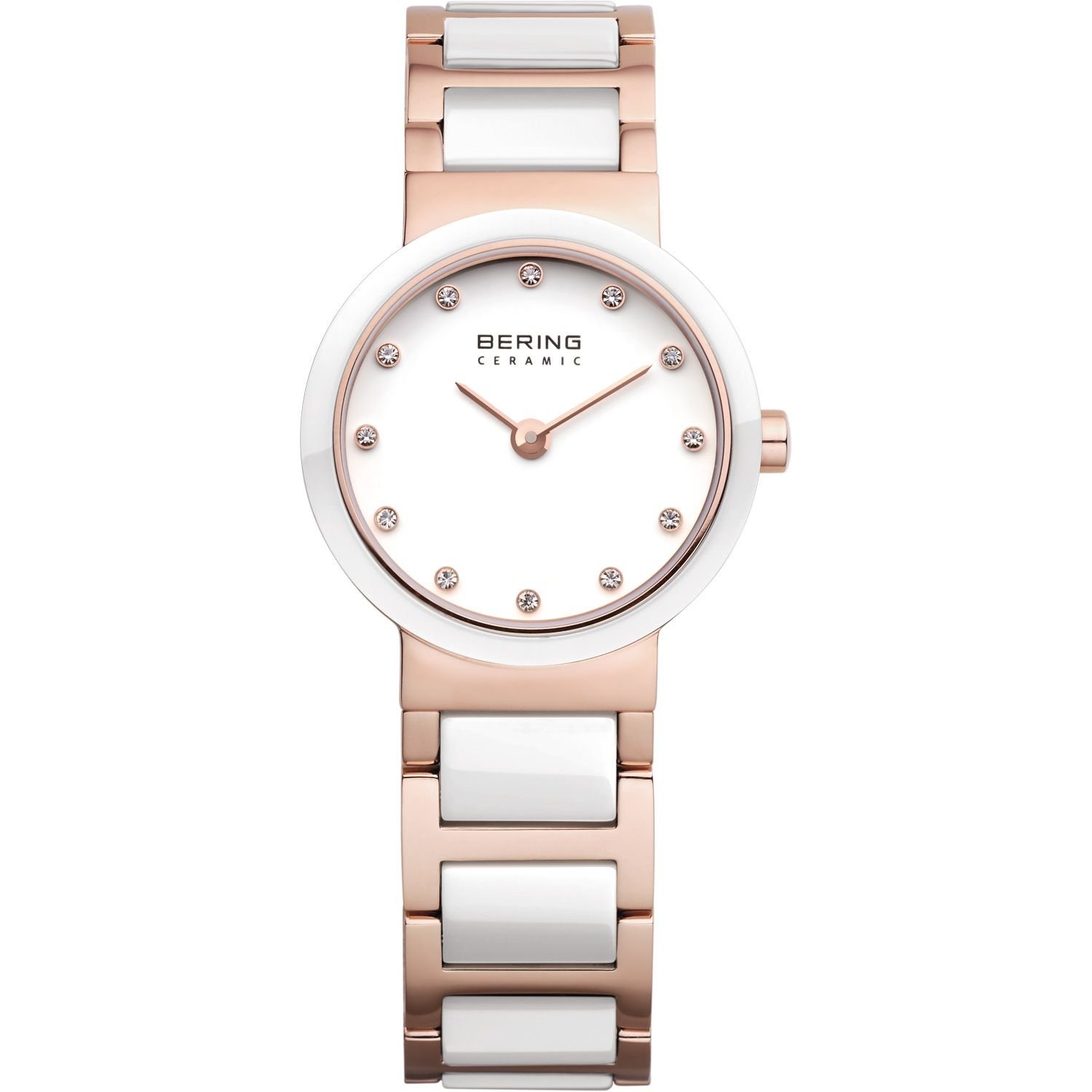 Bering női óra, tok anyaga nemesacél, színe rose-gold, a szíj anyaga nemesacél és a színe rose-gold. Az óratok átmérője 25mm, üvege zafír kristály, szerkezete kvarc és vízállósága 50 m. Az órára 3 év magyar és nemzetközi garancia érvényes.