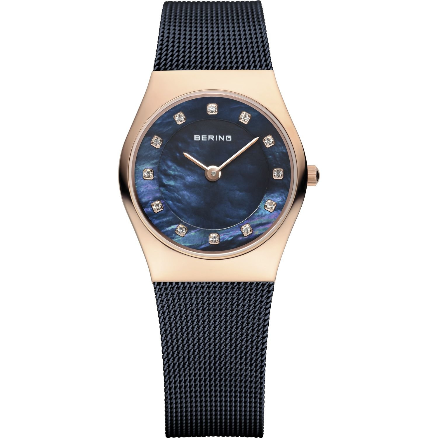 Bering női óra, tok anyaga nemesacél, színe rose-gold, a szíj anyaga nemesacél és a színe kék. Az óratok átmérője 27mm, üvege zafír kristály, szerkezete kvarc és vízállósága 50 m. Az órára 3 év magyar és nemzetközi garancia érvényes.