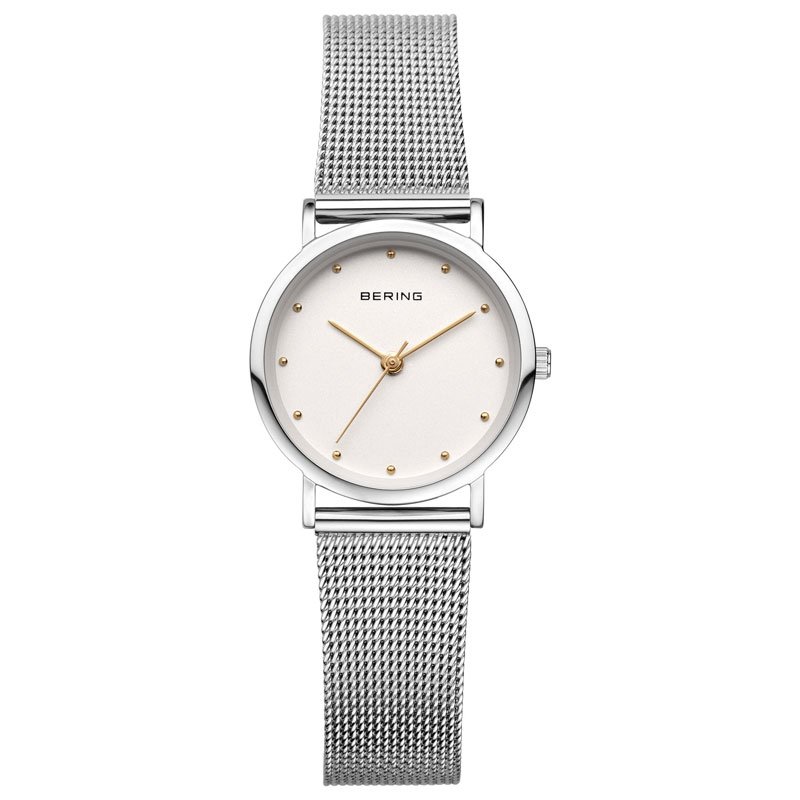 Bering női óra, tok anyaga nemesacél, színe ezüst, a szíj anyaga nemesacél és a színe ezüst. Az óratok átmérője 26mm, üvege zafír kristály, szerkezete kvarc és vízállósága 30 m. Az órára 3 év magyar és nemzetközi garancia érvényes.