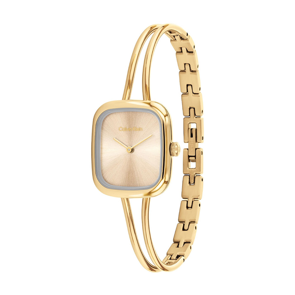 A CALVIN KLEIN CK ADORE női karóra cseppálló (3ATM), sárga arany színű nemesacél tokkal, ásványi kristályüveggel, sárga arany színű, nemesacél összecsukható csattal készül. Az órát pontos quartz óraszerkezet működteti, amely elemmel működik. Emellett a karóra szögletes tokkal és sárga arany színű számlappal rendelkezik.