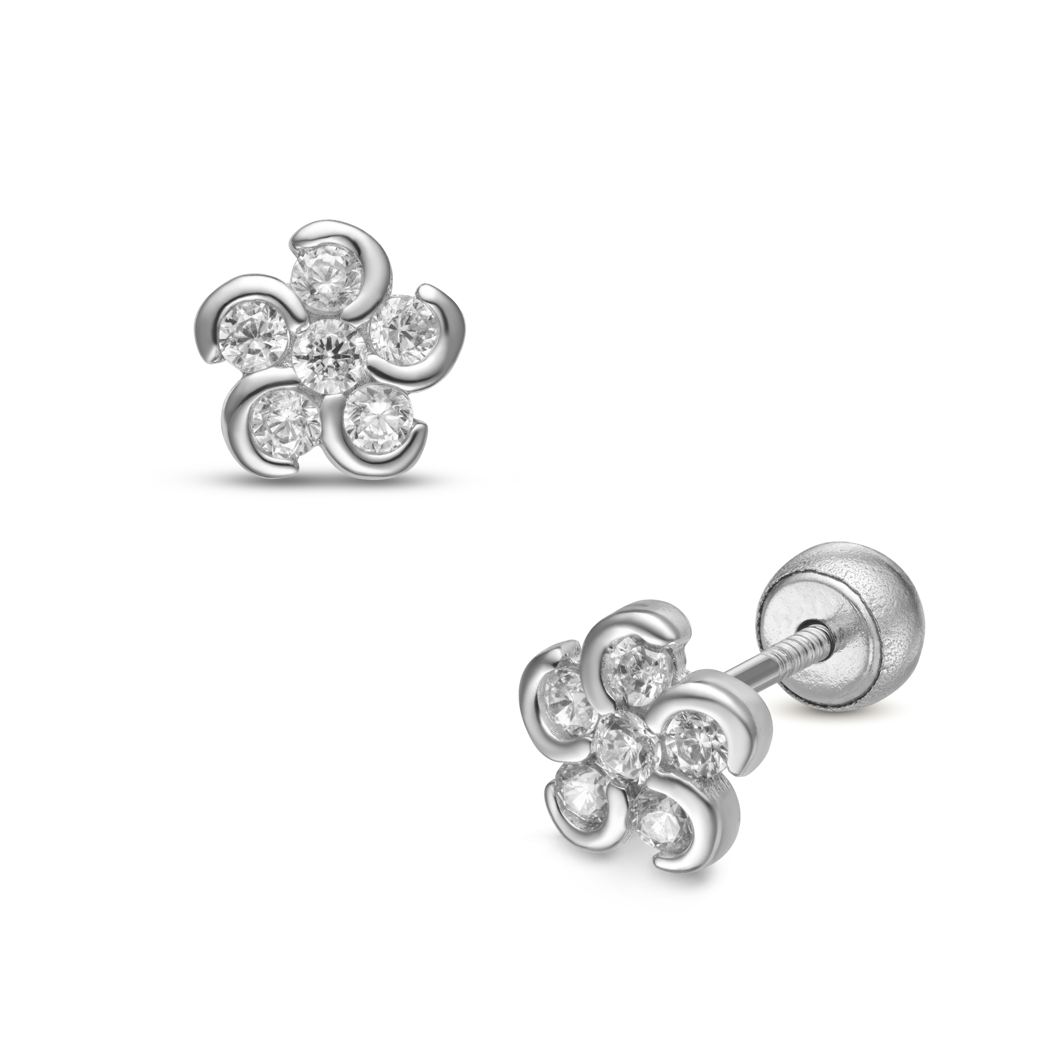 Ez a köves és virágos gyerekfülbevaló egy lenyűgözően szép darabja webshopunk gyerek fülbevaló-kínálatának. A tizennégy karátos fehér aranyból készült ékszer egy szó szerint ragyogó darab. Az ékszer tervezői ugyanis ezt a virágos gyerek fülbevalót hat darab, áttetsző cirkónia kővel álmodták meg, amelytől valóban szikrázó lesz a megjelenése. A virágos forma a kislányok körében az egyik legnépszerűbb szimbólum és típus, így csecsemő kortól egészen kisiskolás korig jó választás lehet, ha ajándékba szánjuk. Ráadásul ennek a köves gyerek fülbevalónak a záródását egy úgynevezett tekerős stekker biztosítja, amely segítségével nem csak a fülcimpa méretéhez lehet igazítani a fülbevalót, hanem a biztonságos és rendkívül kényelmes záródást is biztosítja. Vagyis nem kell attól félni, hogy a fülbevaló az éjjeli forgolódás közben kiesik a gyermek füléből, vagy esetleg attól, hogy szúrni fogja a fülcimpa mögötti részt a fülbevaló vége. Ha beleszerettél ebbe a csodás virágos és köves gyerekfülbevalóba, dobd a kosaradba és néhány napon belül, ingyenesen házhoz is szállítjuk neked!