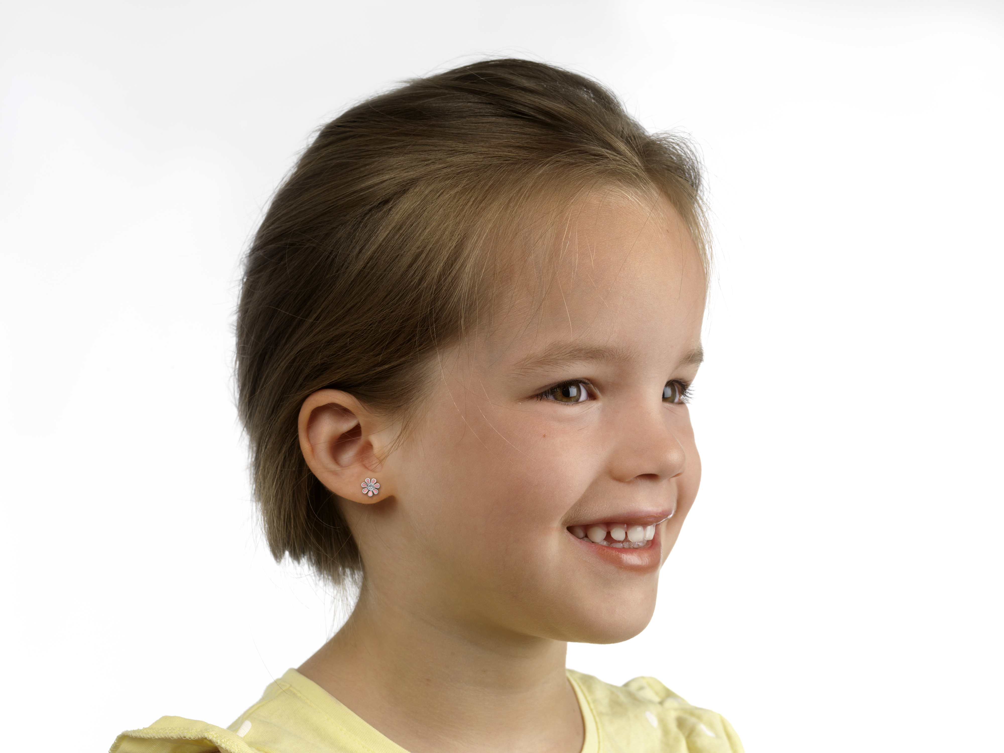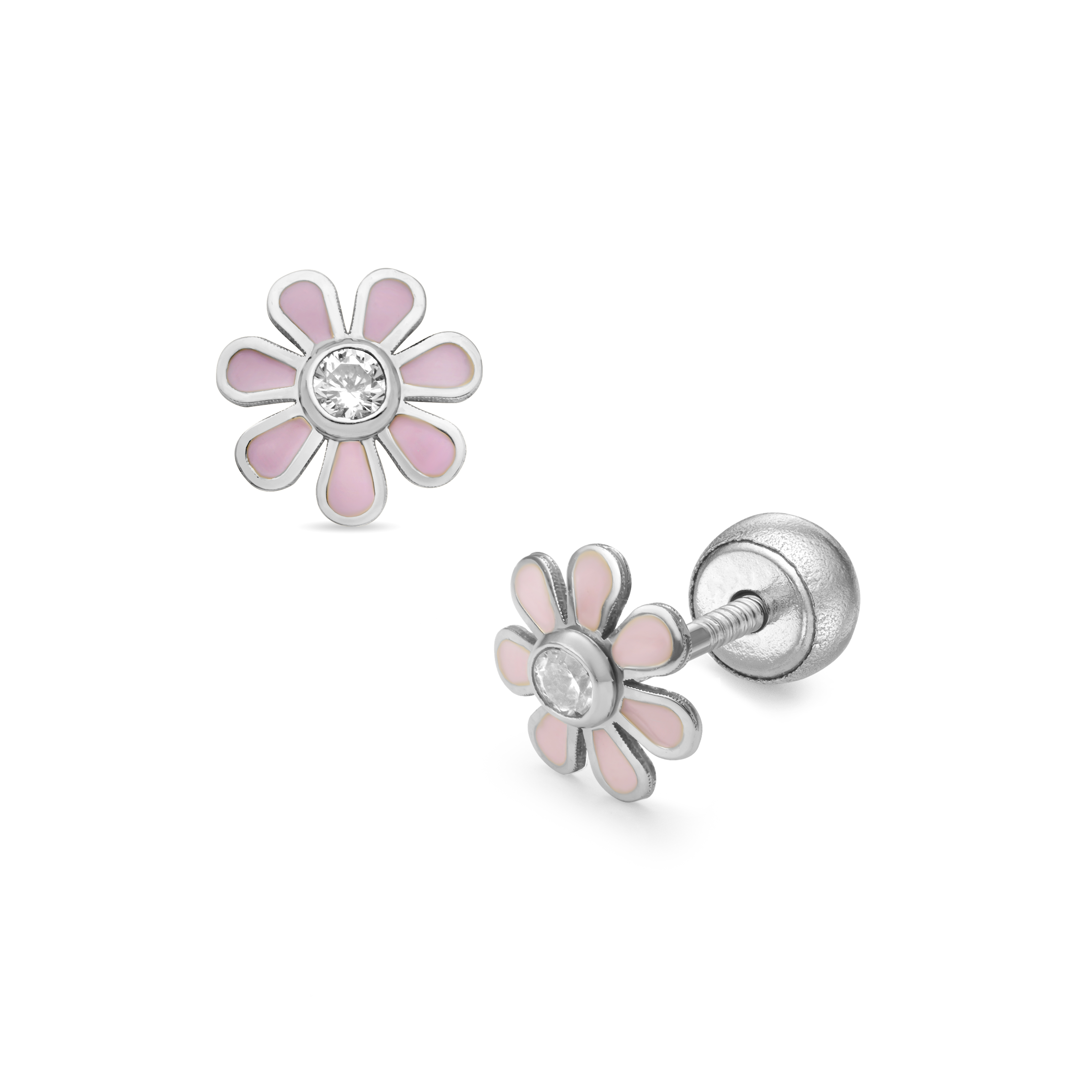 Lisa rózsaszín százszorszép gyerek fülbevaló gömbzárral