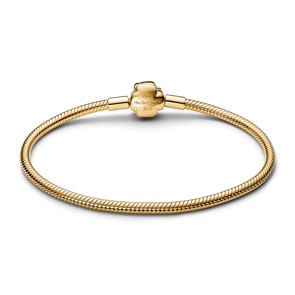 A Pandora Disney Szépség és a Szörnyeteg elvarázsolt rózsa kapcsos karkötő egy különleges, romantikus darab, amely a klasszikus Disney mese varázsát idézi meg. 14 k aranyozással készült, a kapocs közepén az ikonikus, üveg alatt őrzött varázs rózsa motívuma jelenik meg, piros kristállyal kiemelve.