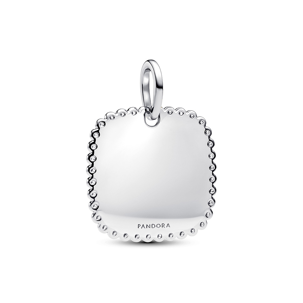 Ez a Pandora medál klasszikus, letisztult stílusban készült, amelyet a személyre szabhatóság tesz igazán különlegessé. Kiváló minőségű 925 sterling ezüstből kialakított, négyzet alakú függőmedál sima, fényes felülettel rendelkezik, amely lehetővé teszi egyedi gravírozás készítését.