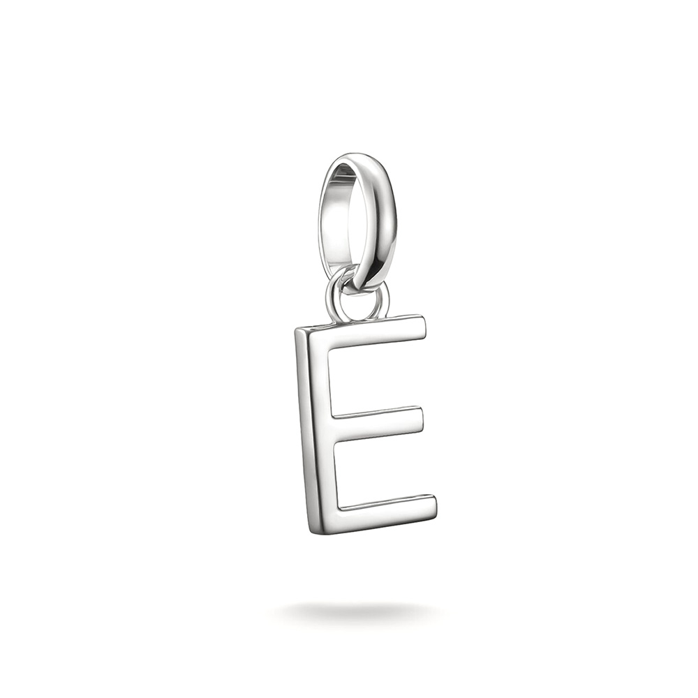 Ezüstből készült "E" betű connect medál, amely egy elegáns, személyre szabható, kiváló minőségű ékszer. Tökéletes lehet önmagában vagy más betűkkel, szimbólumokkal kombinálva is.