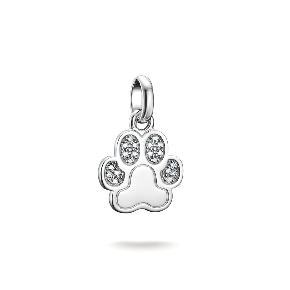 Bájos charm, amely egy aprólékosan kidolgozott állati mancsformát ábrázol, amelyet ragyogó fehér cirkóniakövek díszítenek. A mancs forma nemcsak játékos és szerethető, hanem mélyebb jelentéssel is bír: a hűség, szeretet és az ember és állat közötti kapcsolat szimbóluma. Az ékszer 925 sterling ezüstből készült.