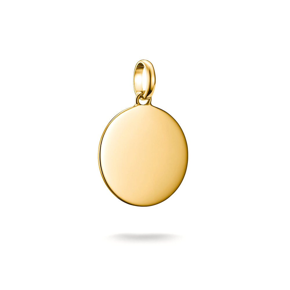 Nagyobb méretű érme formájú sima felület, gravírozható. 925-ös sterling ezüstből készítve, 18 karátos arannyal futtatva. A sima felület alkalmassá teszi egyedi személyes gravírozásokhoz.