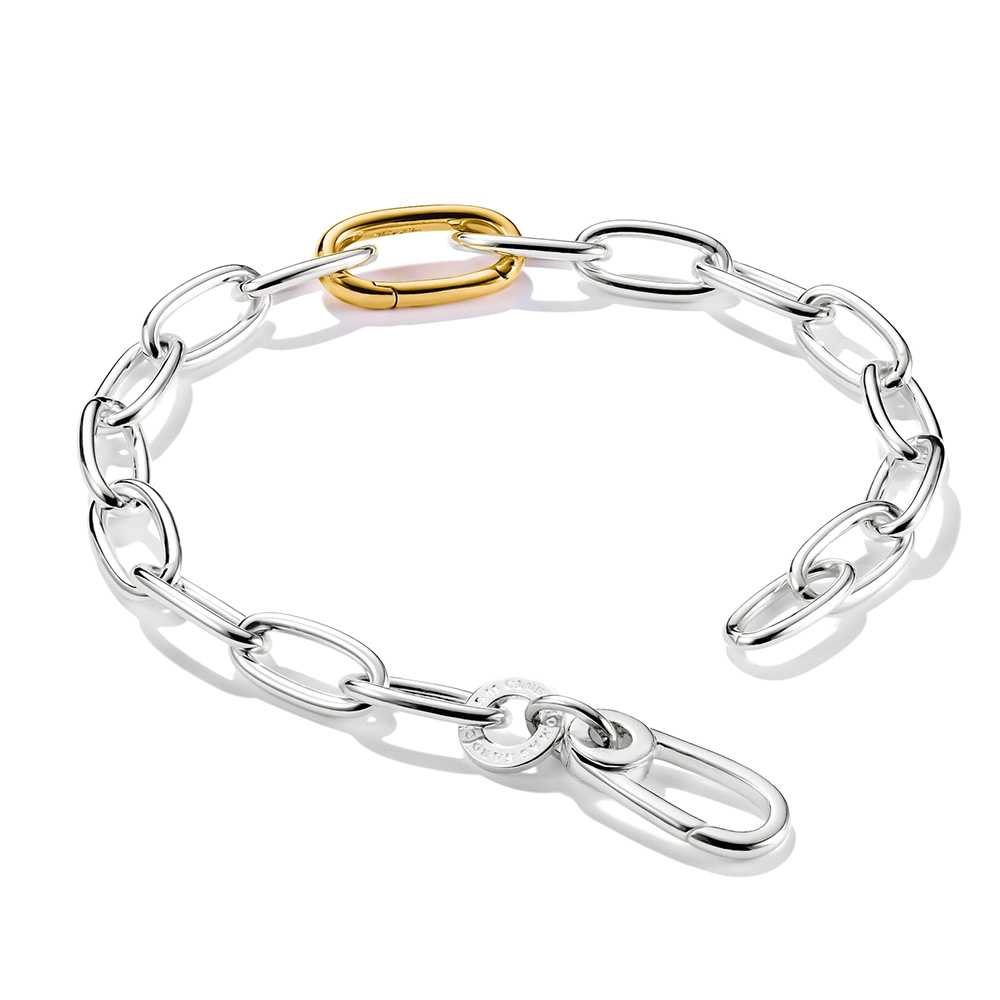 Egy elegáns és sokoldalúan variálható charm karkötő, 925 sterling ezüstből, illetve 18 karátos aranyozással, amelyet kifejezetten a charmok egyéni összeállítására terveztek.
