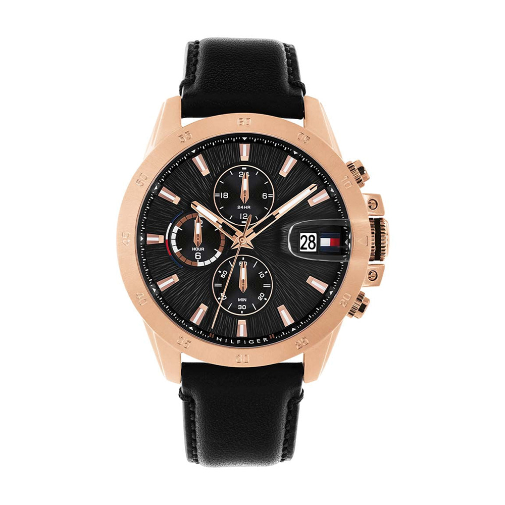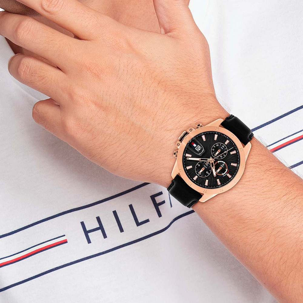 A Tommy Hilfiger Jameson férfi karóra, egy klasszikus és elegáns darab, mely ideális választás azok számára, akik elegáns, stílusos, de hétköznapi viselethez illő órát keresnek. A klasszikus formavilág és a rose gold–fekete kombináció eleganciát sugall. A funkcionális kialakítás, ami magában foglalja a nap- és dátumkijelzést, egyszerűbbé teszi a használatát. Ásványi kristályüveggel, valódi fekete bőr óraszíjjal és rozé arany színű nemesacél óratokkal rendelkezik.