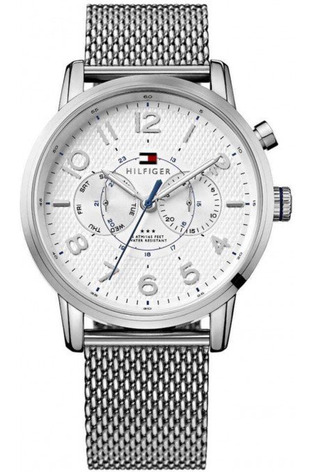 Tommy Hilfiger férfi óra, tok anyaga nemesacél, színe ezüst, a szíj anyaga nemesacél és a színe ezüst. Az óratok átmérője 44mm, üvege ásványi kristály, szerkezete kvarc és vízállósága 50 m. Az órára 2 év magyar és nemzetközi garancia érvényes.