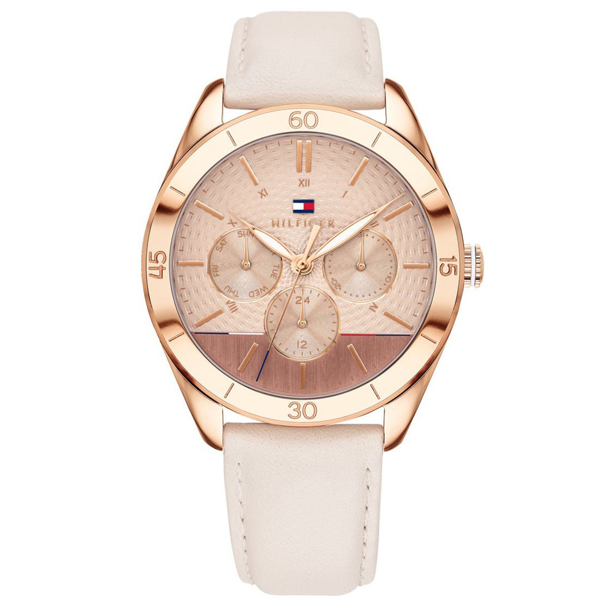 Tommy Hilfiger Gracie női óra, tok anyaga nemesacél, színe rozé arany, a szíj anyaga bőr és a színe bézs. Az óratok átmérője 42mm, üvege ásványi kristály, szerkezete kvarc és vízállósága 30 m. Az órára 2 év magyar és nemzetközi garancia érvényes.